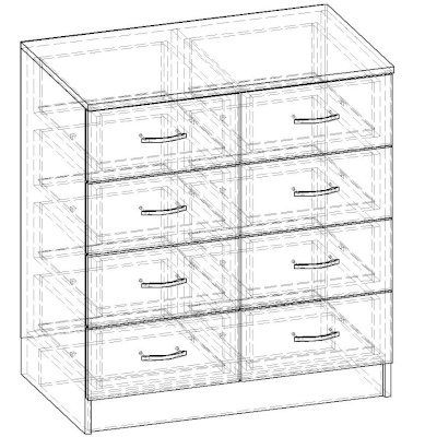 • Корпус, полки и фасады изготовлены из ЛДСП 16 мм с кромкой ПВХ 0,4 мм.