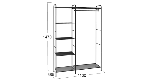 Новинка обладает лаконичным, стильным дизайном и представлена в универсальном черном цвете. Модулю присущи черты минимализма: открытость планировки, максимум простора и воздуха, что делает её идеальным решением для открытого хранения верхней, повседневной одежды и аксессуаров. Наша новинка- это базовое изделие, которое гармонично впишется в скандинавский стиль и направление лофт, а также ее  можно назвать классикой.