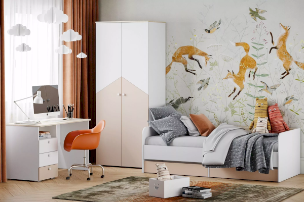 Одноместная кровать Банни НМ 041.38 идеально подходит для оформления уютного спального уголка в детской. Скандинавский стиль коллекции «Банни» идеально подходит для интерьера детской комнаты мальчика и девочки. Несмотря на распространенное мнение, что в комнате ребенка должно быть много цветов, сканди стиль — исключение. В основе лежит несколько базовых оттенков, а яркий цвет добавляется акцентно.