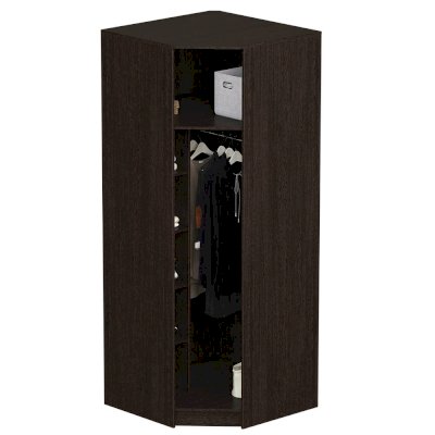 В угловом шкафу Белла из одноименной модульной серии вы сможете разместить большой гардероб. В комплектацию модели входит отделение с хромированной штангой для вешалок, несколько полок для хранения белья и вещей, а также вместительная верхняя полка. Изделие выполнено из ЛДСП, эргономичная лицевая фурнитура.